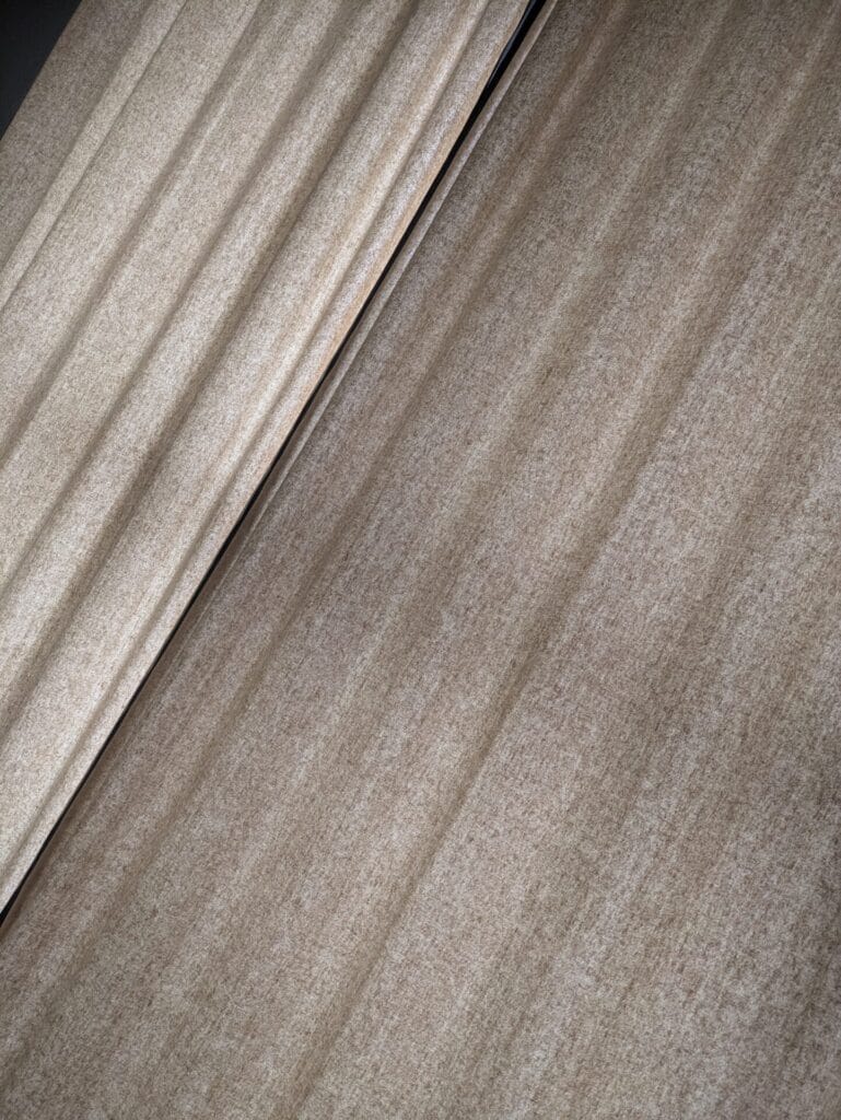 | 生地が伸び縮みする | 調湿効果があるがゆえ、湿気によって生地が伸びたり縮んだりします。ジャストサイズで購入しても床につくことがあるため、あえて少し短めにオーダーすることも検討してもいいかもしれません。 |